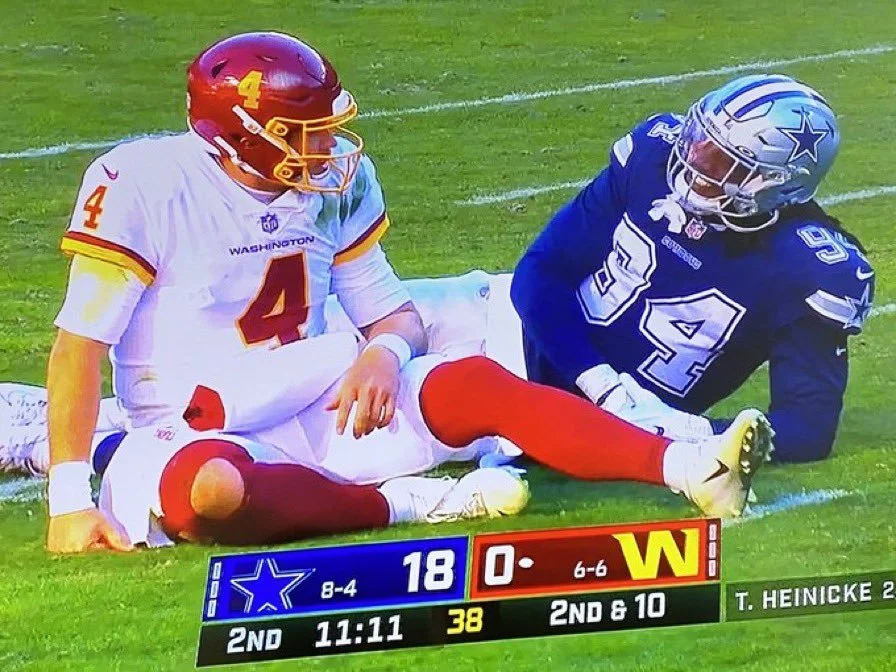 The best for last, Micah Parsons. He has been the heart and soul of this defense all season. Micah recorded 2 sacks, 1 forced fumble, 3 solo tackles, 2 QB hits, and 1 tackle for loss. This brings his totals on the season to 12 sacks, 57 solo tackles, 17 tackles for loss, 3 forced fumbles, and 27 QB Hits for the hybrid pass rusher/linebacker. Micah Parsons is incredibly special because he can generate pressure from anywhere on the field and has an amazing closing speed (4.39 40) when he is near the quarterback. He is the DROY lock and should be a front runner for DPOY along with Myles Garrett. We witnessed what Randy Gregory, Demarcus Lawrence, and Micah Parsons look like when they play together. Randy Gregory recorded his first career INT as well as a sack and a fumble. Neville Gallimore had a very impressive bull rush early 4th quarter where he bulldozed Washington’s center and sacked Taylor Heinicke and Dorance Armstrong scored a touchdown on a fumble. It is very strange that the Cowboys defense has been the light of this team the past few weeks considering last seasons struggles on defense. It is safe to say that Dan Quinn has turned this defense from water to wine.